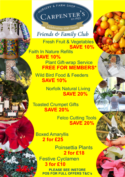 5. You can join the Carpenter’s Nursery Friends & Family Club in store where we will register your card. We will scan your card at the tills every time you make a purchase in the Nursery or Farm Shop. Any offers or rewards that are currently running in the scheme and are applicable will apply to your purchase.